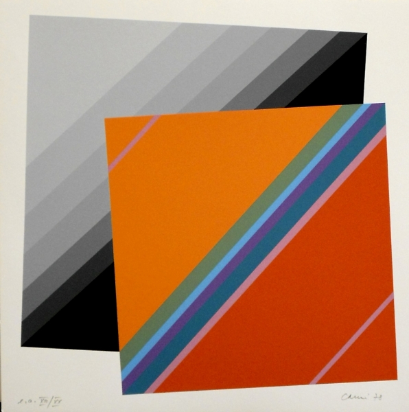 Carmi, Eugenio. Geometrische Komposition. Farblithografie. 1978. Signiert, datiert, nummeriert (e.a. XIII / XX). Blattgröße: ca. 45 x 45 cm.
